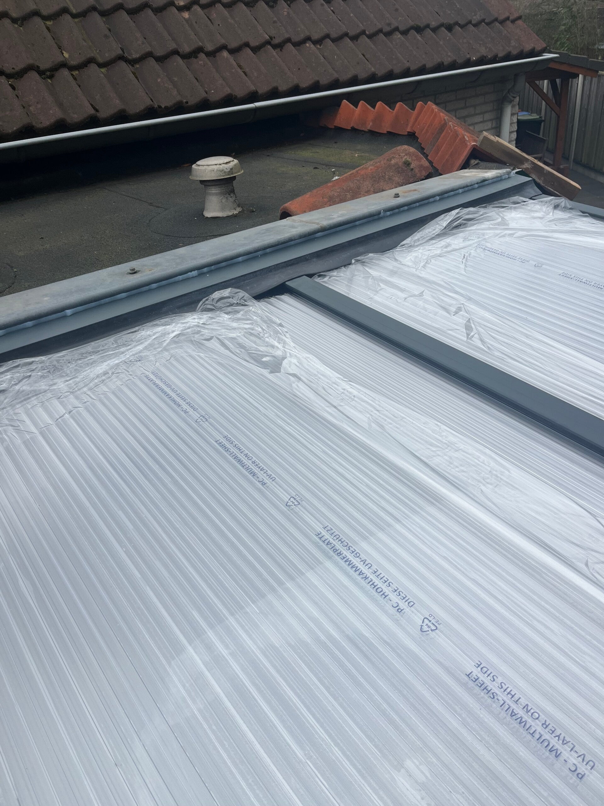 Voorzien van 16 mm polycarbonaat platen standaard Opaal of helder. tegen meerprijs leverbaar in opaal hittewerend.