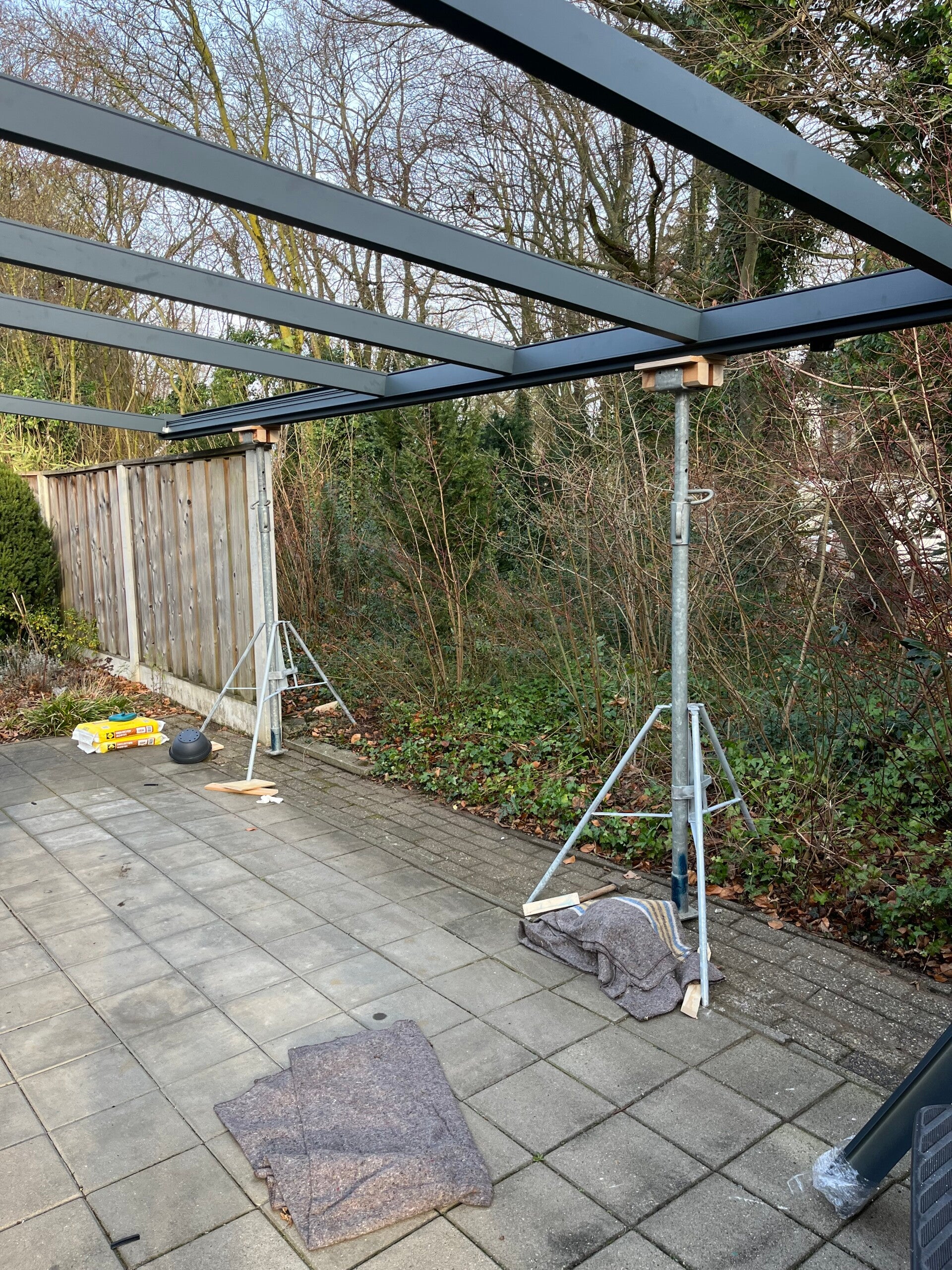 Inclucief bevestigings materialen, exclusief betonpoeren. [ lichtbeton blokken kunt u hiervoor gebruiken deze zijn een stuk voordeliger ]